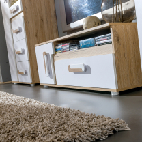 Psací stůl Apetito 9 - Hledáte dětský pokojíček v neutrálních barvách? Apetito v barevné kombinaci dub světlý/bílá bude pro Vás tou pravou volbou. Tato barevná kombinace osvěží a prosvětlí i menší pokojíky. Kombinace je neutrální a je vhodná pro holky i kluky. Ani po letech se neokouká a nábytek tak poslouží dětem předškolního věku i studentům. Dětský pokoj Apetito nabízíme i v dalších barevných kombinacích. Pokojíček si můžete objednat již v předdefinovaných sestavách i po jednotlivých dílech. Snadno si tak sestavíte pokojíček podle svých představ a možností. Nábytek je vyroben z kvalitní laminátové dřevotřísky o síle 16 mm s ochrannou ABS hranou. Záda tvoří HDF desky. Zásuvky jsou opatřeny ložiskovými pojezdy, které zajistí hladký posun. Zboží Vám dodáme v demontu s podrobným návodem na sestavení a kováním.