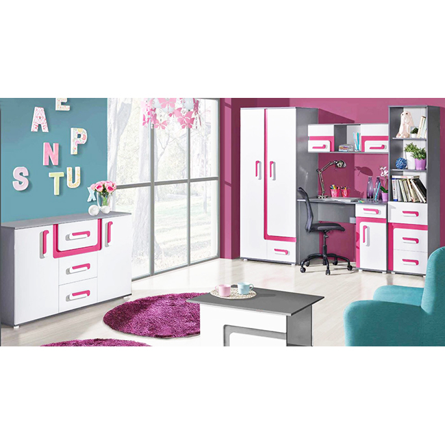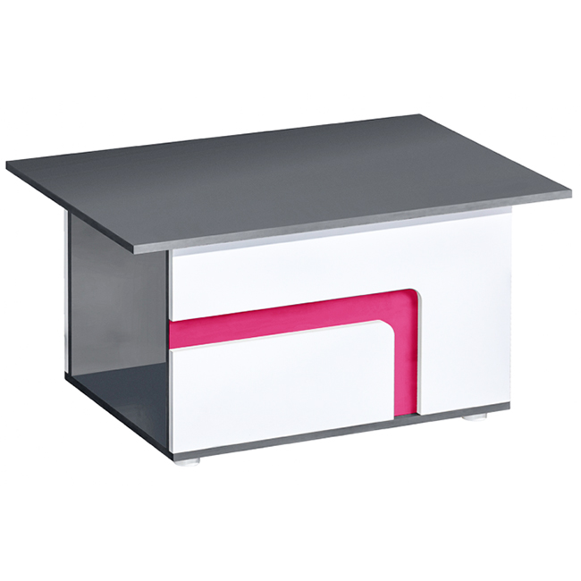 Konferenční stolek 18 - Nábytkový systém Apetito vyniká především svou variabilitou a funkčností. Tento sektorový nábytek je vhodný nejen do dětských pokojíčků, ale je velice vhodný i do studentských pokojů. V nabídce tedy naleznete všechny díly nábytku, které jsou třeba pro správně vybavený pokoj. Tento sektorový nábytek byl navržen ve velmi vkusných barevných variacích. Nejen díky kombinaci kontrastních barev získá váš pokoj na dynamice, atraktivní je i hravé geometrické řešení jednotlivých funkčních částí. Základ tvoří lamino v antracitovém odstínu nebo dekoru - dub jasný. Přední dvířka jsou z bílého lamina s detaily v barvě korpusu, stejně tak jako jsou sladěné úchytky. Zásuvky jsou opatřeny plnovýsuvným mechanismem. Hrany nábytku jsou začištěny ABS hranou. Zboží je dodáváno v demontu.