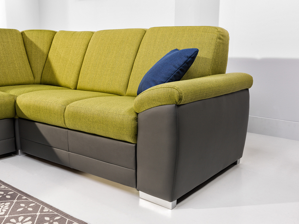 Modulový systém - Kolekce Barello je je velmi oblíbený modulový systém moderního čalouněného nábytku. Kostra jednotlivých dílů je vyrobena z měkkého a tvrdého dřeva a částečně dřevotřísky. Na rohové sedací soupravy jsou použity pružiny faliste. Na čalounění sedáku a opěráku je použita kvalitní polyuretanová výplň. Provedení sedáku a opěráku je pevné. Umožní Vám tak skvělou relaxaci a odpočinek. V tomto modulovém systému naleznete jak díly rozkládací, úložné, tak i díly bez funkce. Samozřejmě jsou díly ve variantách na pravou i levou stranu. Záleží jen na Vás, jak si sedací soupravu sestavíte. Jednotlivé moduly kolekce Barello si můžete objednat z široké nabídky potahových materiálů. Možné kombinovat dvě kontrastní látky. Nohy sedací soupravy jsou z tvrzeného plastu - šedo-stříbrná barva.