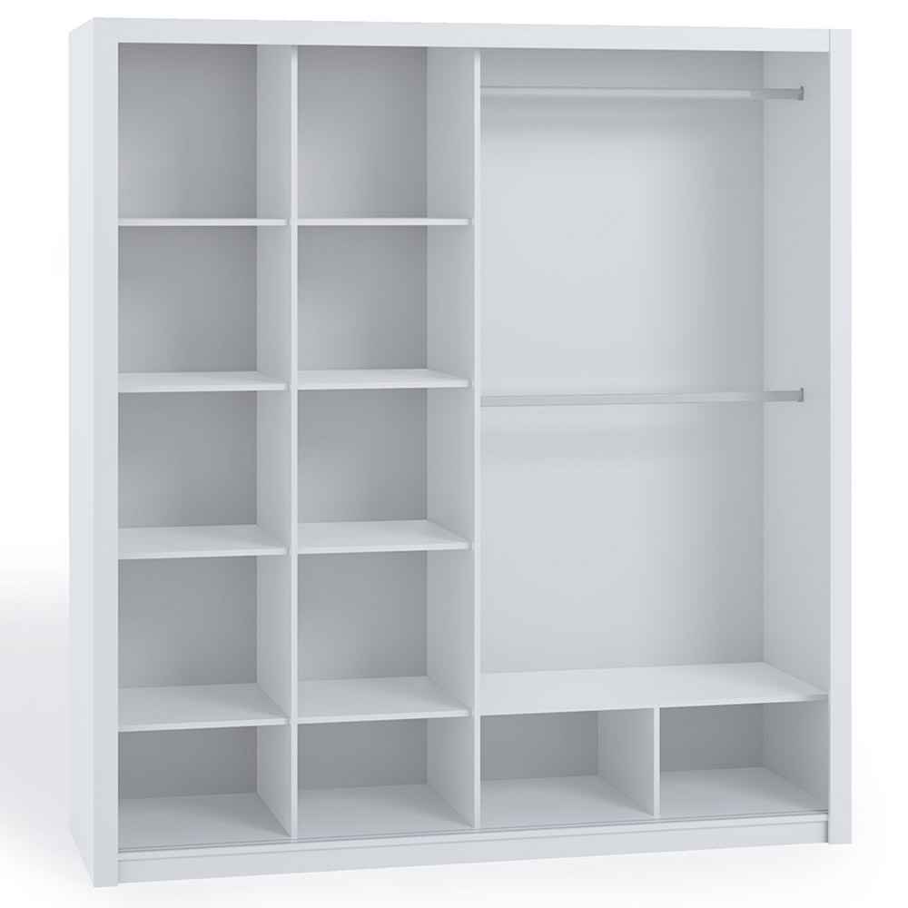 Šatní skříň Bono SZ200 disponuje zrcadlem, 9 policemi a 2 šatními tyčemi. Ke skříni doporučujeme objednat i kontejner (skříňka se zásuvkami).