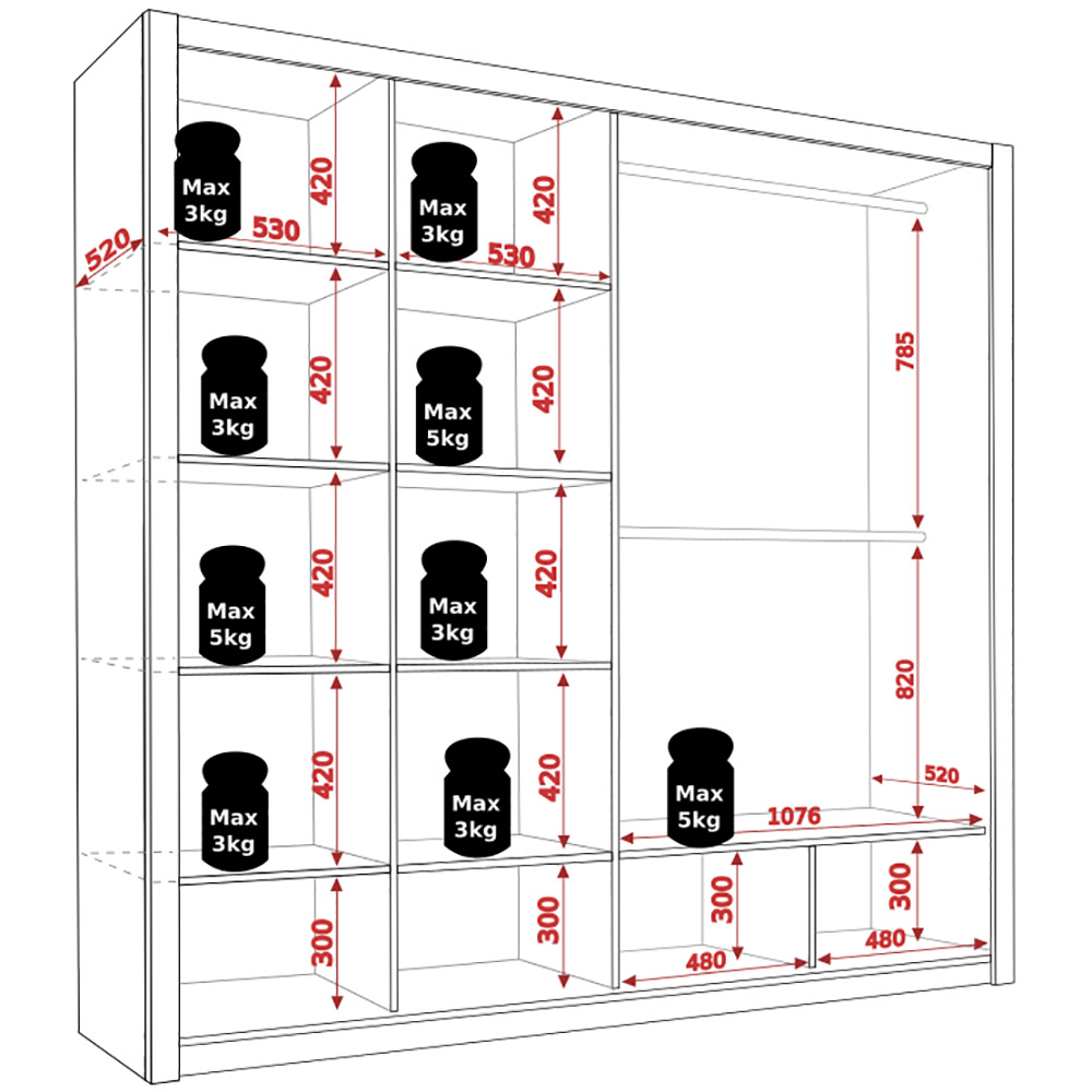 Šatní skříň Bono SZ220 disponuje 9 policemi a 2 šatními tyčemi. Ke skříni doporučujeme objednat i kontejner (skříňka se zásuvkami).