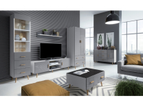 Nábytkový systém Brillo představuje velice vkusnou kolekci nábytku. Brillo si můžete objednat v sestavě i po jednotlivých dílech. Tento nábytek nabízíme v atraktivní barevné kombinací bílá - matná/šedá - lesk/dub artisan. Nohy a úchyty jsou vyrobené z masivního dřeva. Na korpus jsou použity laminátové desky o síle 1,6 mm v matném odstínu. Dvířka a čela zásuvek tvoří MDF desky v lesklém odstínu. Zboží Vám dodáme v demontu s návodem na sestavení a kováním.