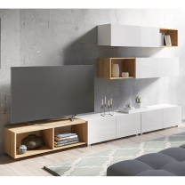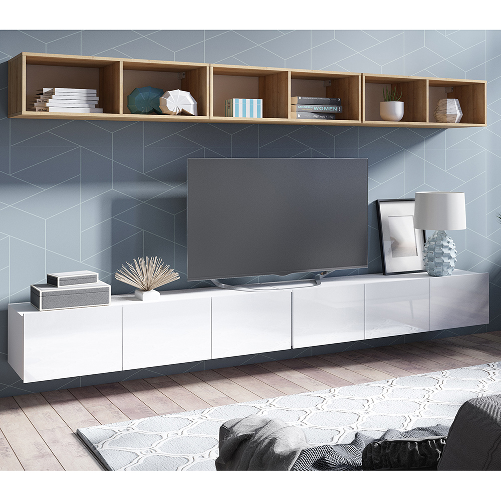 Obývací stěna CALABRINI b 300 cm | 7 dílů E1 | bílá lesk/dub zlatý