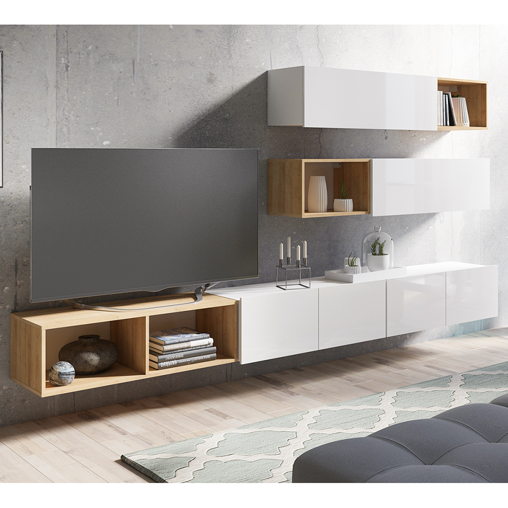 Obývací stěna CALABRINI b 300 cm | 7 dílů E1 | bílá lesk/dub zlatý