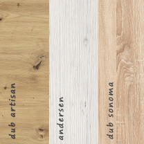 Korpusy skříněk jsou vyrobené z kvalitní laminátové dřevotřísky o síle 16 mm a jsou dostupné ve třech stylových dekorech: