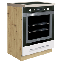 Dolní kuchyňská skříňka CREATIVA CRE-17D na vestavnou troubu má zásuvku, která se otvírá systémem PUSH OPEN "stiskni a otevři". U této skříňky není třeba volit typ kování. Cena nezahrnuje troubu na obrázku.