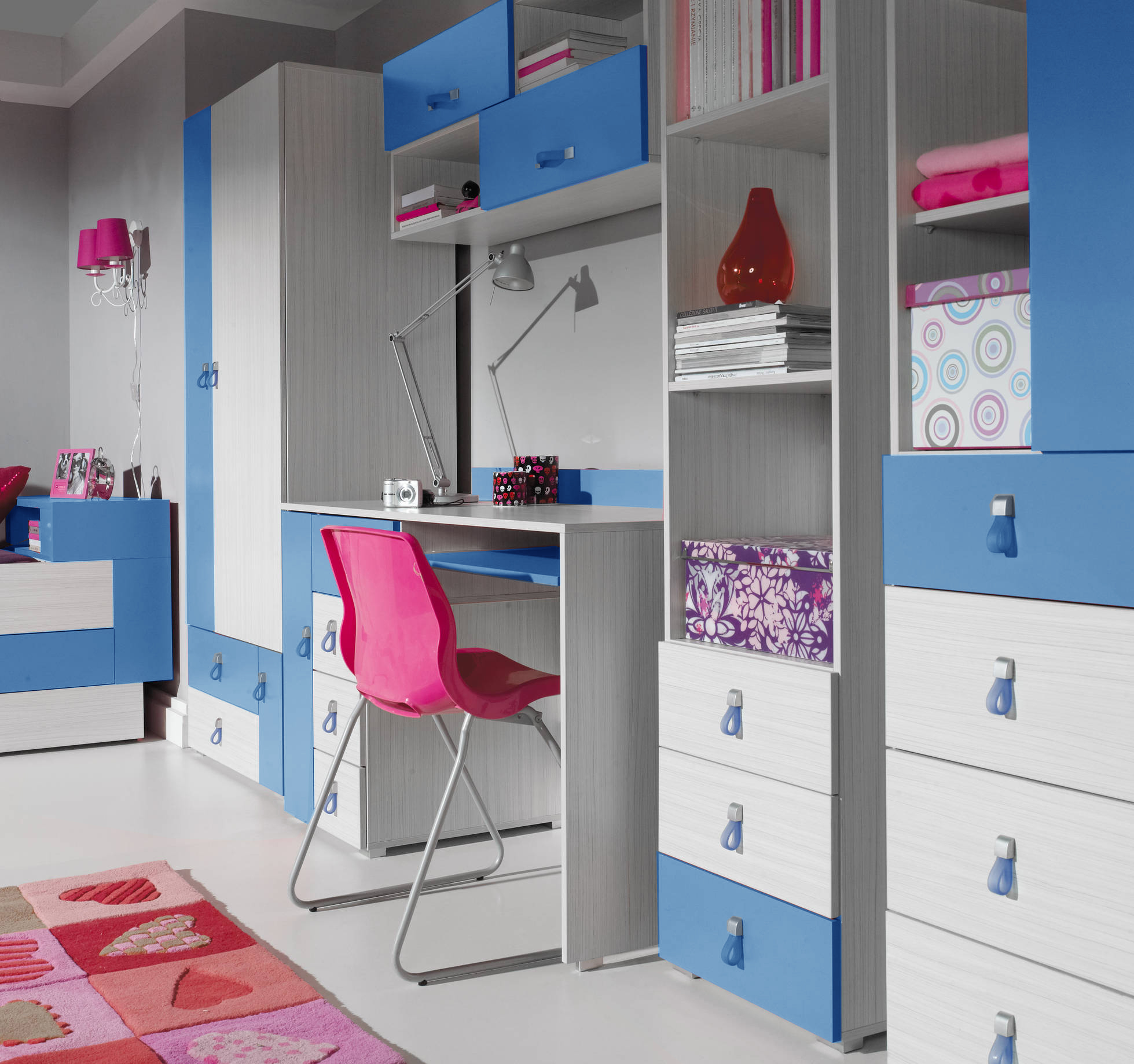 Dětský pokoj Komi vyniká především svou variabilitou. Tento sektorový nábytek je vhodný nejen do dětských pokojíčků, ale je velice vhodný i do studentských pokojů. V nabídce tedy naleznete všechny díly nábytku, které jsou třeba pro správně vybavený pokoj. Další předností dětského pokoje Komi je jeho velice atraktivní barevnost. Základ tvoří lamino v barevném odstínu jasan komi, které je v kombinaci buďto s odstínem růžové, nebo modré. Hrany nábytku jsou opatřeny ABS hranou. Zboží je dodáváno v demontu.