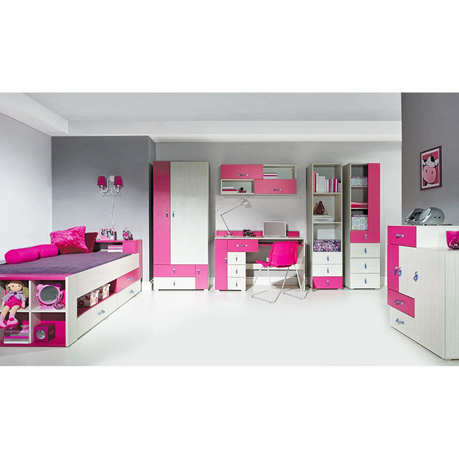 Dětský pokoj Komi vyniká především svou variabilitou. Tento sektorový nábytek je vhodný nejen do dětských pokojíčků, ale je velice vhodný i do studentských pokojů. V nabídce tedy naleznete všechny díly nábytku, které jsou třeba pro správně vybavený pokoj. Další předností dětského pokoje Komi je jeho velice atraktivní barevnost. Základ tvoří lamino v barevném odstínu jasan komi, které je v kombinaci buďto s odstínem růžové, nebo modré. Hrany nábytku jsou opatřeny ABS hranou. Zboží je dodáváno v demontu.