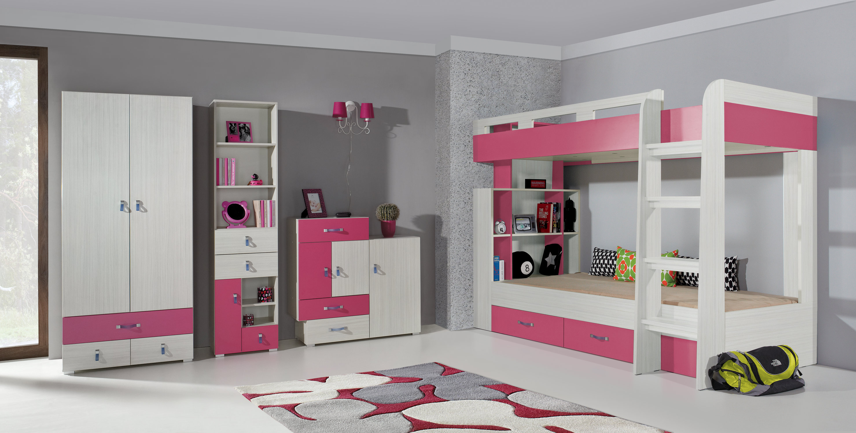 Dětský pokoj Komi vyniká především svou variabilitou. Tento sektorový nábytek je vhodný nejen do dětských pokojíčků, ale je velice vhodný i do studentských pokojů. V nabídce tedy naleznete všechny díly nábytku, které jsou třeba pro správně vybavený pokoj. Další předností dětského pokoje Komi je jeho velice atraktivní barevnost. Základ tvoří lamino v barevném odstínu jasan komi, které je v kombinaci buďto s odstínem růžové, nebo modré. Hrany nábytku jsou opatřeny ABS hranou. Zboží je dodáváno v demontu.