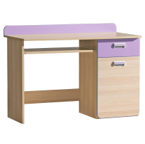 Lorento sestava D - Dětský pokoj Lorento si Vaše děti zaručeně zamilují. Kolekce Lorento nabízí širokou škálu jednotlivých dílů i sestav, ze kterých si snadno sestavíte pokojíček na míru podle potřeb. Nábytek Lorento je vhodný pro předškoláky, školáky i studenty. Příjemná barevná kombinace světlého dekoru dřeva jasan coimbra a fialové vytvoří to pravé prostředí pro hraní i učení. Nábytku Lorento dodávají moderní vzhled oblé úchytky a oblé hrany některých desek. Nábytek je vyroben z kvalitní laminátové dřevotřísky o síle 16 mm s ochrannou ABS hranou. Záda zpevňují HDF desky s omyvatelnou vnitřní stranou. Zásuvky jsou opatřeny ložiskovými pojezdy, které zajišťují hladký posun. Zboží Vám dodáme v demontu s podrobným návodem na sestavení a kováním.