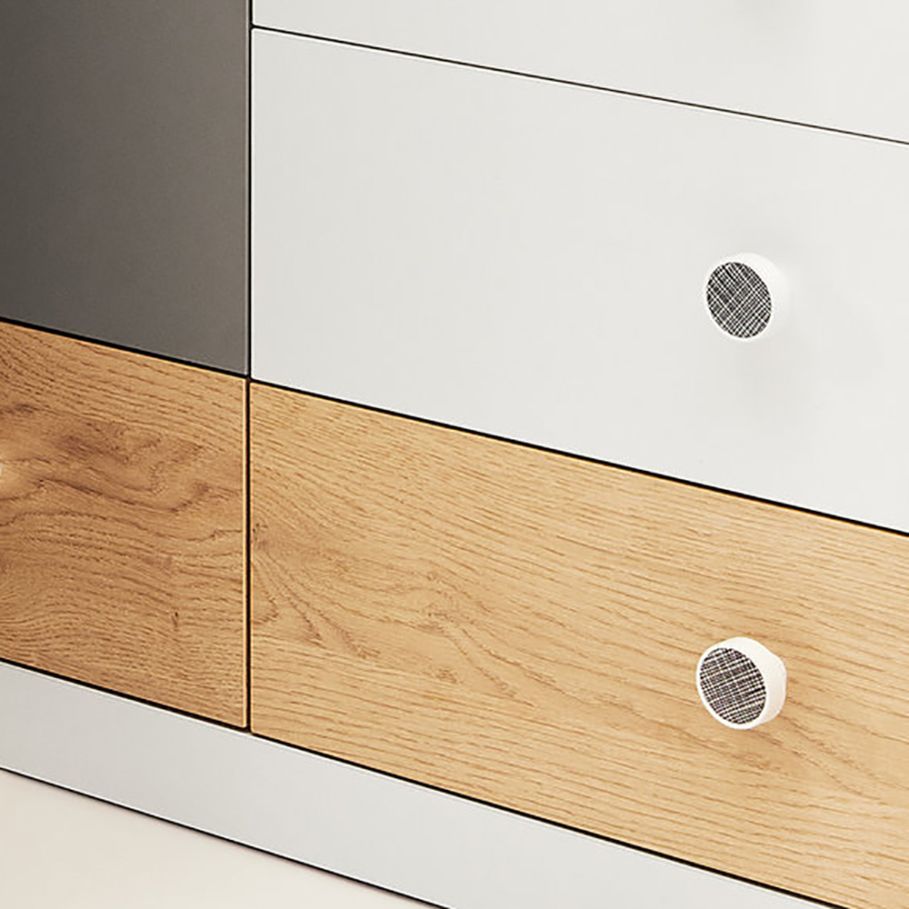 PIXEL komoda PX9 | 85 cm | se zásuvkami | dub/bílá lux/šedá