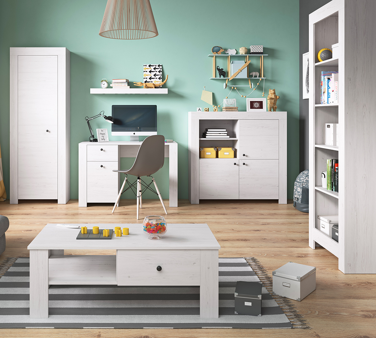 Nábytkový systém Rene prosvětlí a osvěží Vaše prostory. Kolekci Rene nabízíme v oblíbeném dekoru borovice andersen, který decentně doplňují minimalistické černé úchytky. René si můžete objednat v již předdefinovaných sestavách i po jednotlivých dílech. Nábytek je vyroben z kvalitní laminátové dřevotřísky o síle 16 mm s ochranou ABS hranou. Zboží Vám dodáme v demontu s návodem na sestavení a kováním.