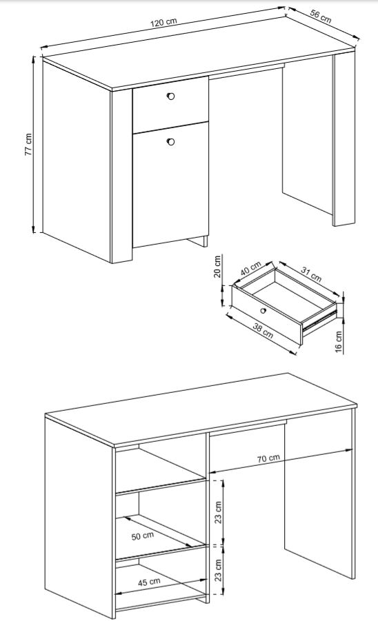 Výška psací stůl RB120 | 77 cm |