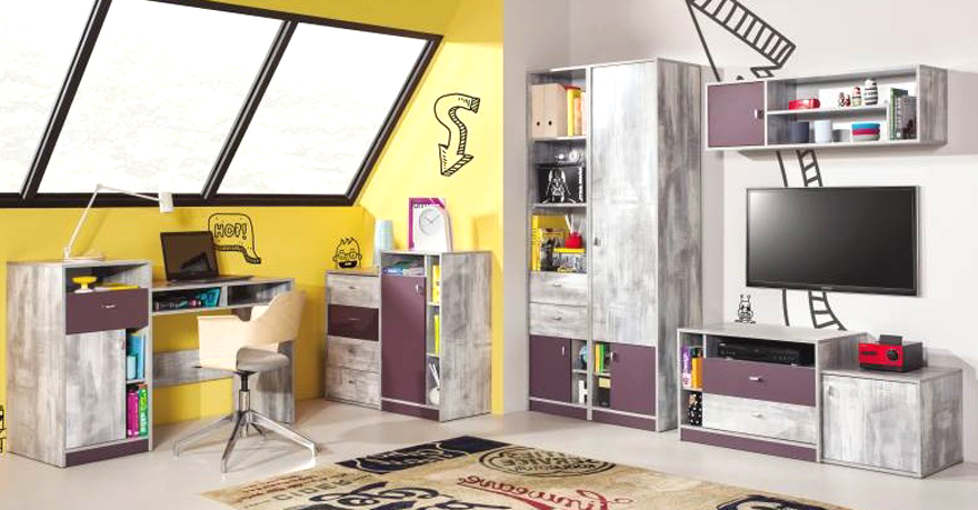 Studentský/dětský pokoj Zoom patří mezi naše novinky. Tato kolekce vyniká svým moderním designem a funkčností. Obzvláště dvě rohové šatní skříně ZM1 a ZM2 prakticky řeší úložný prostor. Nábytek je vyroben z kvalitní laminátové dřevotřísky v netradiční barevné kombinaci Hong kong/lilková. Pokojíček si lze objednat jako celek, nebo jako jednotlivé díly. Zboží Vám dodáme v demontu s návodem na sestavení a kováním.