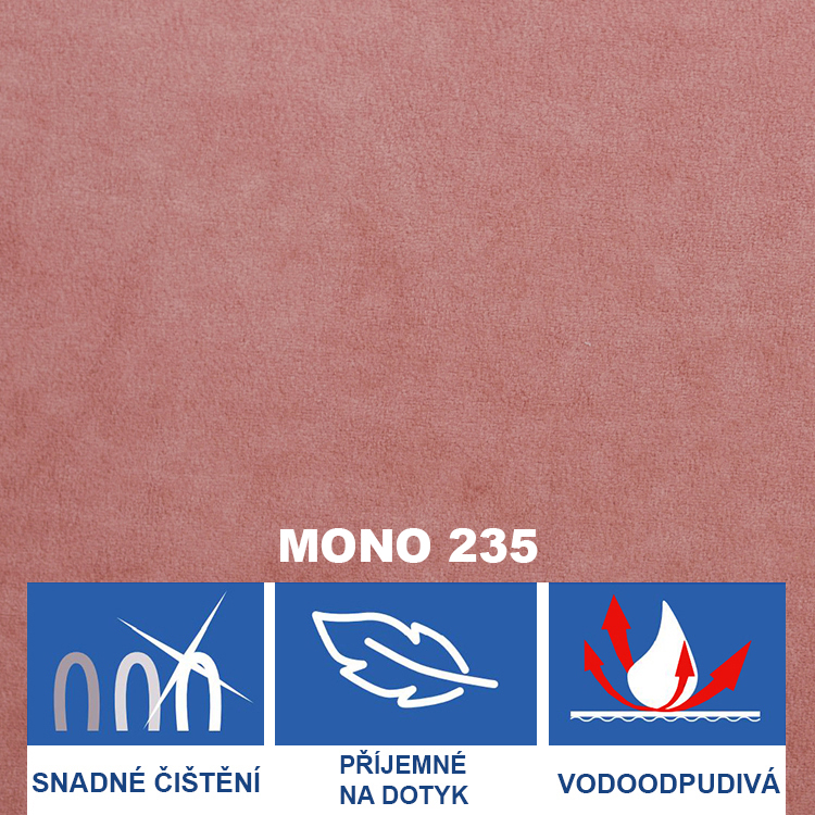 - Tkanina MONO je potažena speciální ochrannou vrstvou, která tvoří hydrofobní povlak, který chrání před rychlým prosakováním kapalin. To zabraňuje okamžité absorpci vody tkaninou, což způsobuje kondenzaci kapaliny na povrchu materiálu. Díky tomu máme čas použít jemný hadřík nebo papírovou utěrku k jemnému odlití rozlité kapaliny.