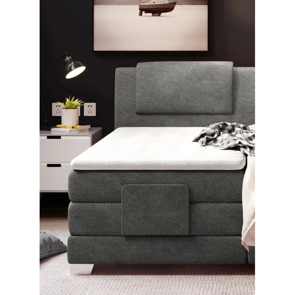 Luxusní dvoulůžko boxspring Wave je tou nejlepší volbou pro Váš kvalitní spánek a odpočinek. Tato postel se stane neodmyslitelnou součástí každe moderně zařízené ložnice. Nadchne Vás nejen svým důmyslným designem, ale také svými praktickými vlastnostmi. U této kontinentální postele bylo navrženo dostatečně vysoké čalouněné čelo, které jistě oceníte jako příjemnou ochranu od studené stěny, ale také jí využijete, když se budete chtít opřít např. při čtení oblíbené knihy. Devízou boxspringových postelí je komfortně nakombinovaná skladba matrací a topperu. Dvoulůžko Wave je opatřeno elektrickým ovládáním na každé půlce postele, takže si každý napolohuje svoji část přesně podle sebe. Tuto postel nyní nabízíme v akčních potahových látkách Mercedes, kde si můžete vybrat ze tří odstínů.