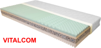 VITALCOM - Kvalitní partnerská matrace dvou tuhostí. Horní strana matrace – měkčí je z kvalitní polyuretanové pěny, která je tvarovaná do masážních nopů. Nopky jsou rozděleny do 7 anatomických zón. Použitím nopů dochází k lepšímu prokrvení pokožky a uvolnění svalů. Spodní strana matrace je opatřena masážními vlnkami pro dokonalou relaxaci a klidný spánek. Matrace má pevnějším středem tvořený z rekonstituované polyuretanové pěny. Celková konstrukce matrace má dlouhou životnost a dostatečnou kvalitu. Potah Standard, snímatelný, dělený zipem a pratelný na 60°C.