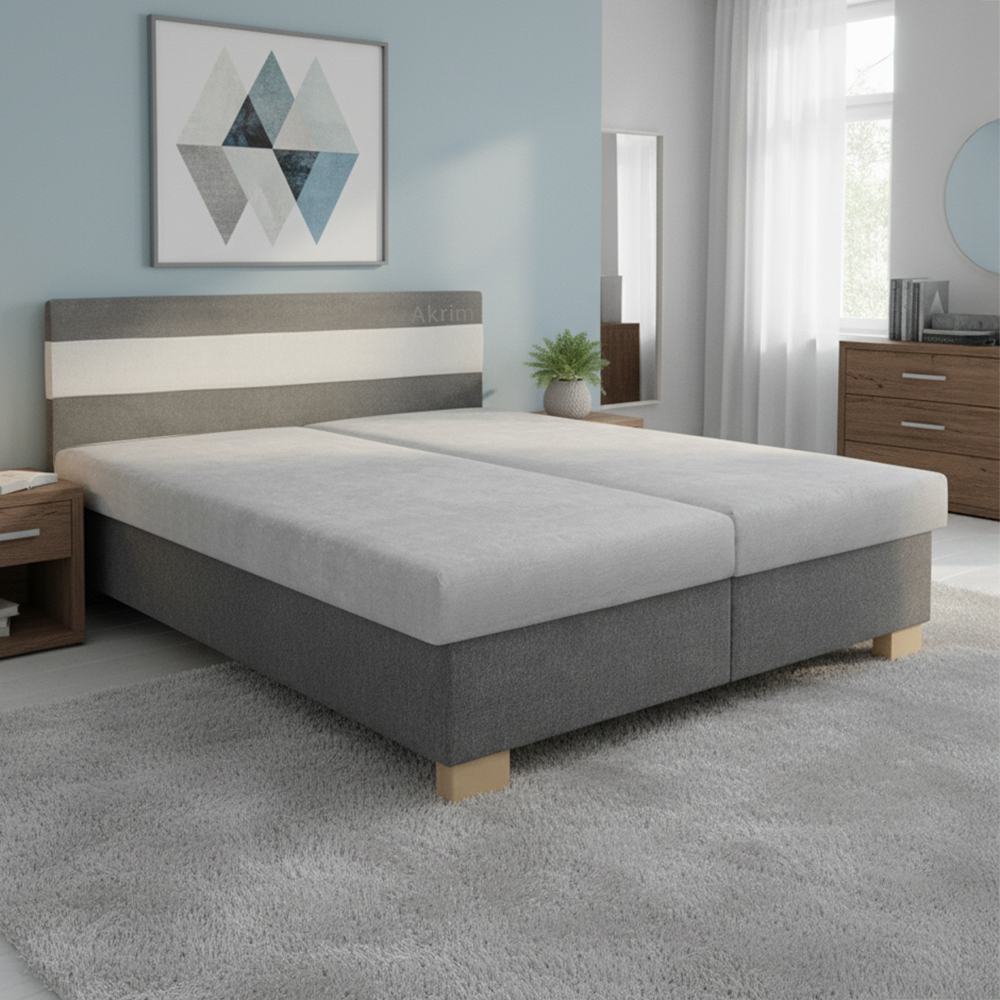 Dvoulůžko Linda patří mezi klasické čalouněné postele české výroby s vysokou spací plochou. Linda disponuje polohovacím lamelovým roštem, se kterým si nastavíte tu správnou polohu na spaní. Postel si můžete zvolit v libovolných tkaninách ze vzorníku. Pokud byste se potřebovali poradit s výběrem tkanin, neváhejte se nám ozvat. Rádi Vám poradíme. U postele Linda si lze vybrat z několika typů kvalitních matrací. Stejně tak si můžete zvolit i design nožiček tak, aby se Vám postel stylově hodila do pokoje. Pod spací plochou najdete praktický úložný prostor s větracími otvory. Rám je vyroben z kvalitní laminátové dřevotřísky s omyvatelnou vnitřní stranou. Zboží Vám dodáme ve 3 balících. V úložném prostoru najdete nožičky, které snadno našroubujete do připravených otvorů. Dále stačí přišroubovat devě jednolůžka k sobě a čelo postele a už si můžete užívat zasloužený odpočinek.