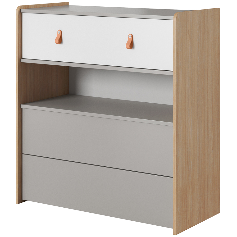 Elmo - komoda 3S - dub jantarový/bílá/platinová šedá