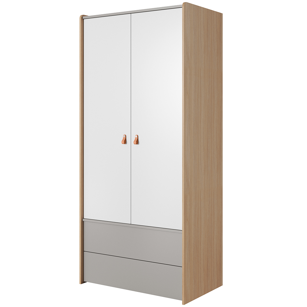 Elmo - skříň 2D2S - dub jantarový/bílá/platinová šedá