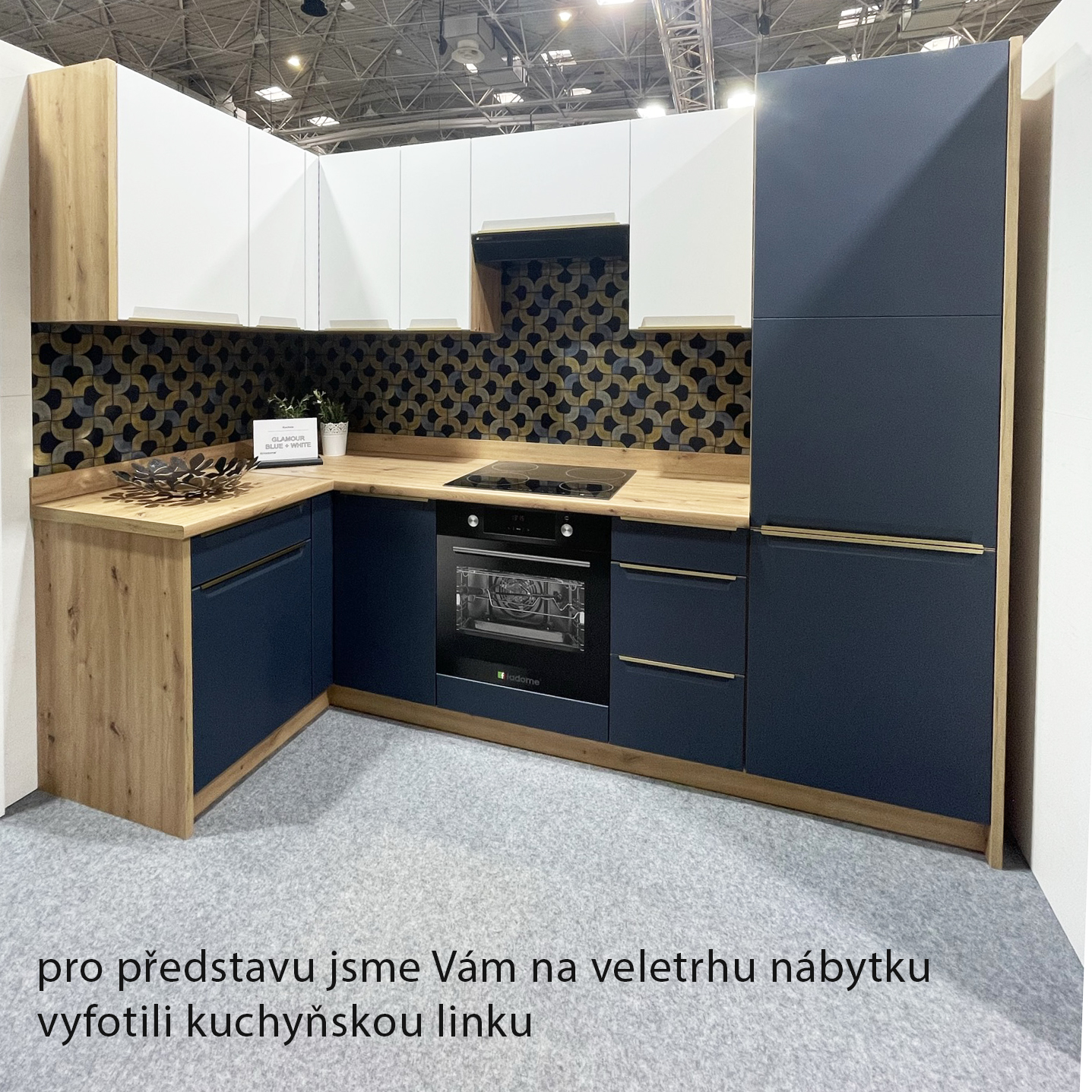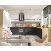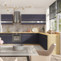 Kolekce moderní kuchyňské linky Glamour v modré přináší exkluzivní a nejmodernější skříňky do kuchyně. Atraktivní kombinace dřevěného dekoru, modrých dvířek a zlatých úchytů vytvoří příjemné a elegantní prostředí, ve kterém budete s radostí vařit. Modulová kuchyňská linka Glamour nabízí různé horní skříňky, spodní skříňky, vysoké skříňky a další doplňkový sortiment. Korpus skříněk si můžete vybrat z několika dřevěných dekorů.