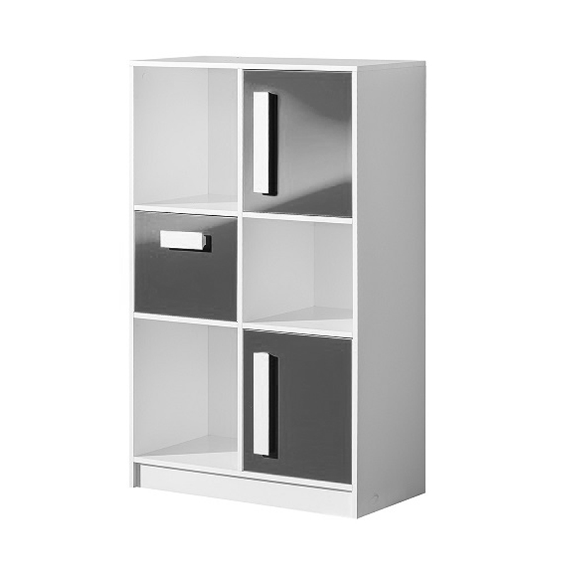 Komoda vysoká Guliver 80 - 7 - Nábytkový systém Guliver vyniká především svou variabilitou a funkčností. Tento sektorový nábytek je vhodný nejen do dětských pokojíčků, ale je velice vhodný i do studentských pokojů. V nabídce tedy naleznete všechny díly nábytku, které jsou třeba pro správně vybavený pokoj. Tento sektorový nábytek byl navržen ve velmi vkusných barevných variacích. Nejen díky kombinaci kontrastních barev získá váš pokoj na dynamice, atraktivní je i hravé geometrické řešení jednotlivých funkčních částí. Základ tvoří lamino v bílém odstínu. Přední dvířka jsou popelavá v lesku. Zajímavým prvkem u tohoto nábytku jsou masivní úchyty. Hrany nábytku jsou začištěny ABS hranou. Zboží je dodáváno v demontu.