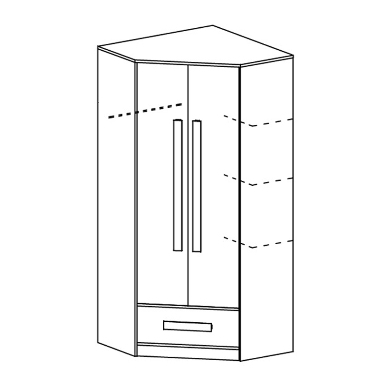 Rohová skříň Guliver - 2 - Nábytkový systém Guliver vyniká především svou variabilitou a funkčností. Tento sektorový nábytek je vhodný nejen do dětských pokojíčků, ale je velice vhodný i do studentských pokojů. V nabídce tedy naleznete všechny díly nábytku, které jsou třeba pro správně vybavený pokoj. Tento sektorový nábytek byl navržen ve velmi vkusných barevných variacích. Nejen díky kombinaci kontrastních barev získá váš pokoj na dynamice, atraktivní je i hravé geometrické řešení jednotlivých funkčních částí. Základ tvoří lamino v bílém odstínu. Přední dvířka jsou popelavá v lesku. Zajímavým prvkem u tohoto nábytku jsou masivní úchyty. Hrany nábytku jsou začištěny ABS hranou. Zboží je dodáváno v demontu.