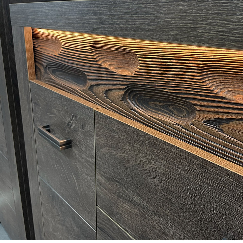 Konferenční stolek Indianapolis I13 - Nábytkový systém Indianapolis vnese do Vašeho domova rustikální nádech. Indianapolis nabízí širokou škálu komod, skříní a dalšího nábytku, se kterým si podle svých představ vybavíte ložnici, obývací pokoj i jídelnu. Nábytek je vyroben z kvalitní laminátové dřevotřísky o síle 16 mm s ochranou ABS hranou. Záda zpevňují HDF desky s omyvatelnou vnitřní stranou. Dvířka a zásuvky disponují kovovými úchyty. Hladký posun zásuvek zajišťují ložiskové pojezdy. Některé díly z kolekce Indianapolis zdobí desky z masivu s designovým 3D reliéfem. K těmto deskám doporučujeme objednat LED lišty, které je nasvítí a dodají nábytku dynamický vzhled. Osvětlení si lze objednat i do skleněných poliček. LED osvětlení se skládá ze zdroje světla, kabelu, trafa na vypínání a zástrčky do el. sítě. Zboží Vám dodáme v demontu s podrobným návodem na sestavení a kováním.