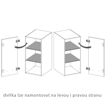 Skříňka Infinity INF-33G disponuje 2 policemi. Dvířka lze namontovat na levou i pravou stranu. U této skříňky není nutné volit typ kování.