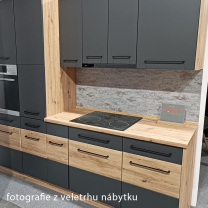 Kolekce moderní kuchyňské linky Infinity v atraktivní kombinaci dřevěného dekoru artisan a šedé mat přináší exkluzivní a nejmodernější skříňky do kuchyně. Kuchyňský nábytek Infinity vytvoří příjemné a elegantní prostředí, ve kterém budete s radostí vařit. Modulová kuchyňská linka Infinity nabízí různé horní skříňky, spodní skříňky, vysoké skříňky a další doplňkový sortiment.