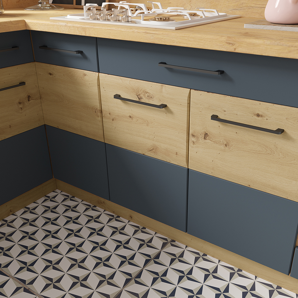 Kolekce moderní kuchyňské linky Infinity v atraktivní kombinaci dřevěného dekoru artisan a šedé mat přináší exkluzivní a nejmodernější skříňky do kuchyně. Kuchyňský nábytek Infinity vytvoří příjemné a elegantní prostředí, ve kterém budete s radostí vařit. Modulová kuchyňská linka Infinity nabízí různé horní skříňky, spodní skříňky, vysoké skříňky a další doplňkový sortiment.