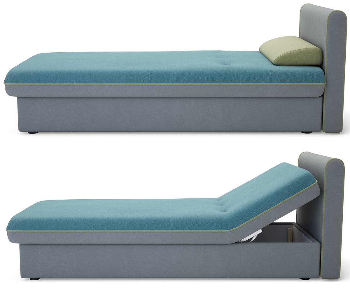 Jednolůžko Aga je skvělou volbou do dětského i studentského pokoje. Jednolůžko má velice praktický polohovací rošt a úložný prostor na lůžkoviny. Agu nabízíme v různých barevných kombinacích v tkanině Soro. Tato tkanina je velice odolná a snadno se čistí. Čelo lůžka je čalouněné i na zadní straně a lze ho tak umístit do prostoru. Cena zahrnuje jeden polštář.