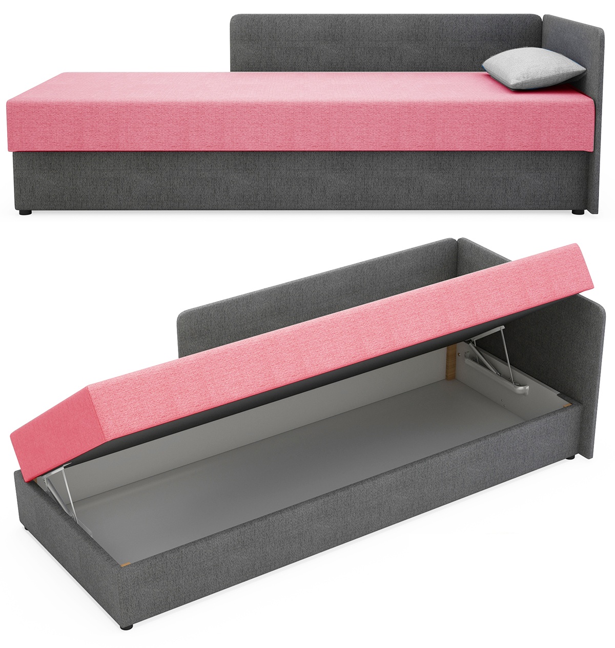 Jednolůžko Open je skvělou volbou do dětského i studentského pokoje. Jednolůžko má velice praktický polohovací rošt a úložný prostor na lůžkoviny. Open nabízíme v různých barevných kombinacích. Jednolůžko lze objednat v levé i pravé variantě. Čelo lůžka je čalouněné i na zadní straně a lze ho tak umístit do prostoru. Cena zahrnuje jeden polštář.