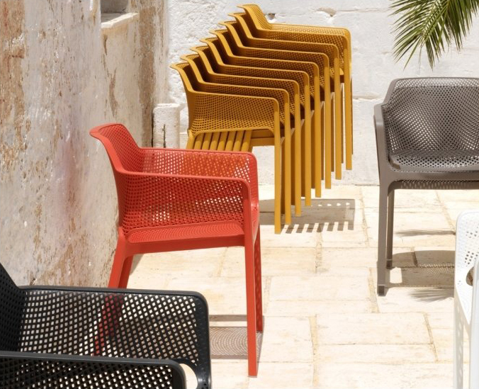 Plastové jídelní křesílko Net s područkami představuje ideální řešení do zátěžových prostorů. Křesílko snadno omyjete a nemusíte tak neustále řešit skvrny na sedáku. Net lze stohovat, čímž ušetříte místo při skladování. Křesílko je možné využívat venku i ve vnitřních prostorách. Na výrobu tohoto křesílka byl použit polypropylen se skelným vláknem (FG). Křesílko Net nabízíme ve více barevných variantách. Zboží Vám dodáme již smontované. Uvedená dostupnost je pouze orientační. Výrobce má většinou židličky skladem.