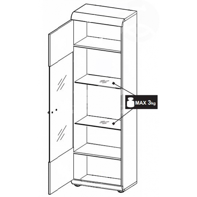 dvířka vitríny si lze sestavit na levou či pravou stranu