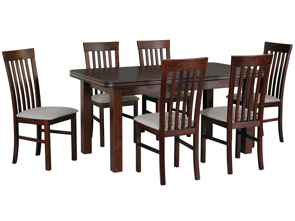 Tato jídelní sestava představuje moderní styl nábytku. Konstrukce židle tvoří masivní bukové dřevo. Odstín nohou i potahovou tkaninu si lze zvolit libovolně ze vzorníku. Deska stolu je vyrobena z dýhy. Nohy a rám stolu tvoří bukové dřevo. Stůl lze snadno rozkládá. Židle Vám dodáme již smontované. Stůl Vám dodáme v demontu. Nohy stolu a deska budou zvlášť, avšak montáž je snadná.