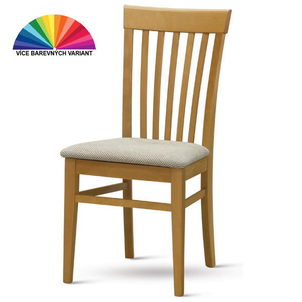 Jídelní židle K2 - jídelní židle v populárním provedení s opěrkou s příčkami a pohodlným čalouněným sedákem. Vylepšená konstrukce, kostra buk masiv. Tuto židli nabízíme v několika odstínech moření.