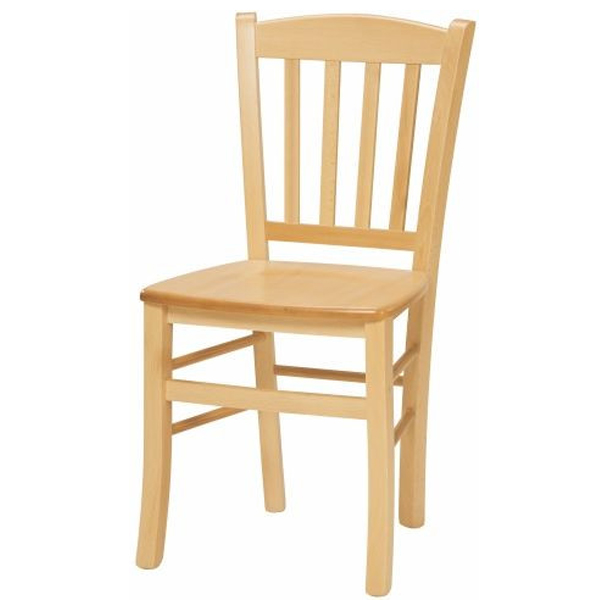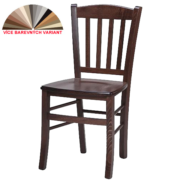 Jídelní židle Veneta je velmi oblíbený typ masivní židle, hodící se jak do domácnosti, tak do zátěžového provozu. Díky dřevěnému sedáku se velmi snadno udržuje. Tuto židli nabízíme v několika odstínech moření.