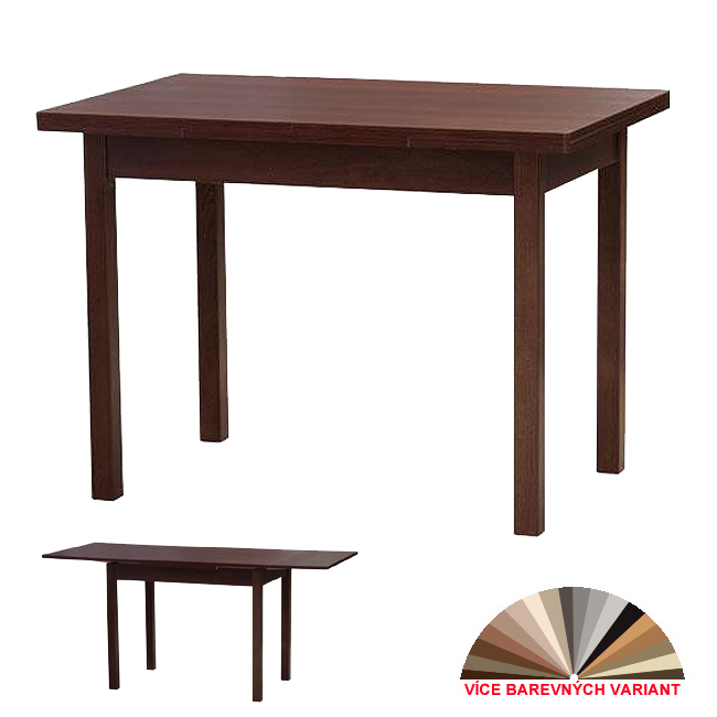 Jídelní stůl Lido je klasický rozkládací stůl. Vrchní deska je vyrobena z laminované dřevotřísky o tloušťce 18 mm, nohy jsou vyrobeny z masivu 5x5 cm. Stůl je opatřen ABS hranou. Tento stůl si můžete vybrat hned v několika odstínech moření.
