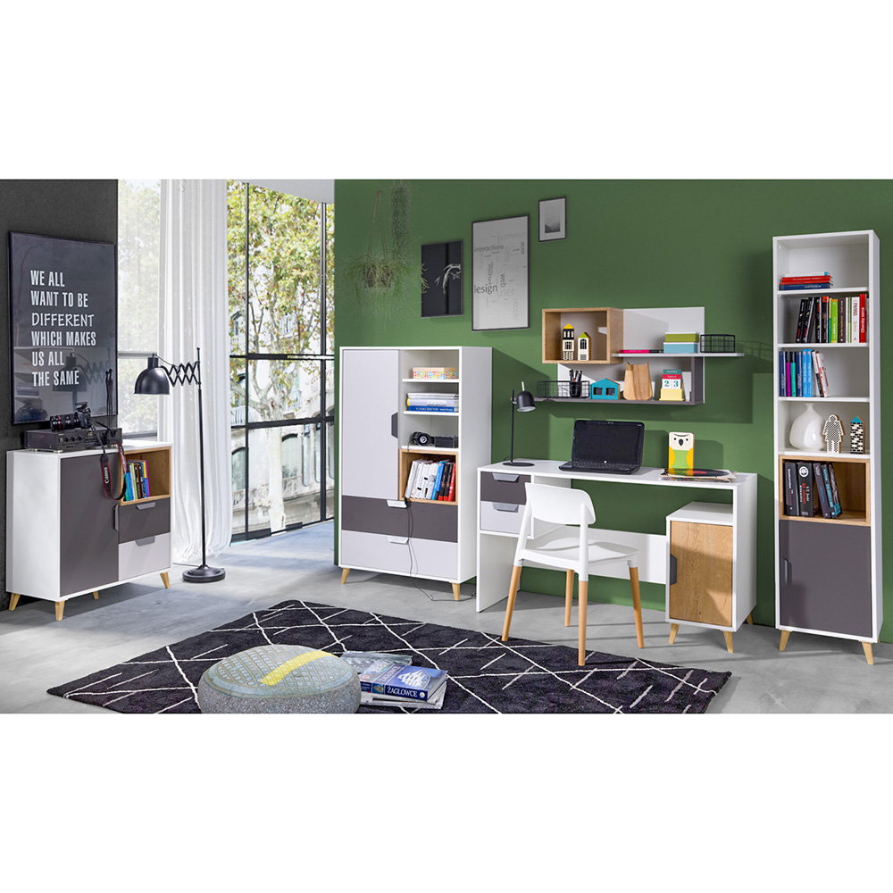 Dětský pokoj JOKER sestava E | 5 dílů | bílá/grafit/šedá/lefkas světlý