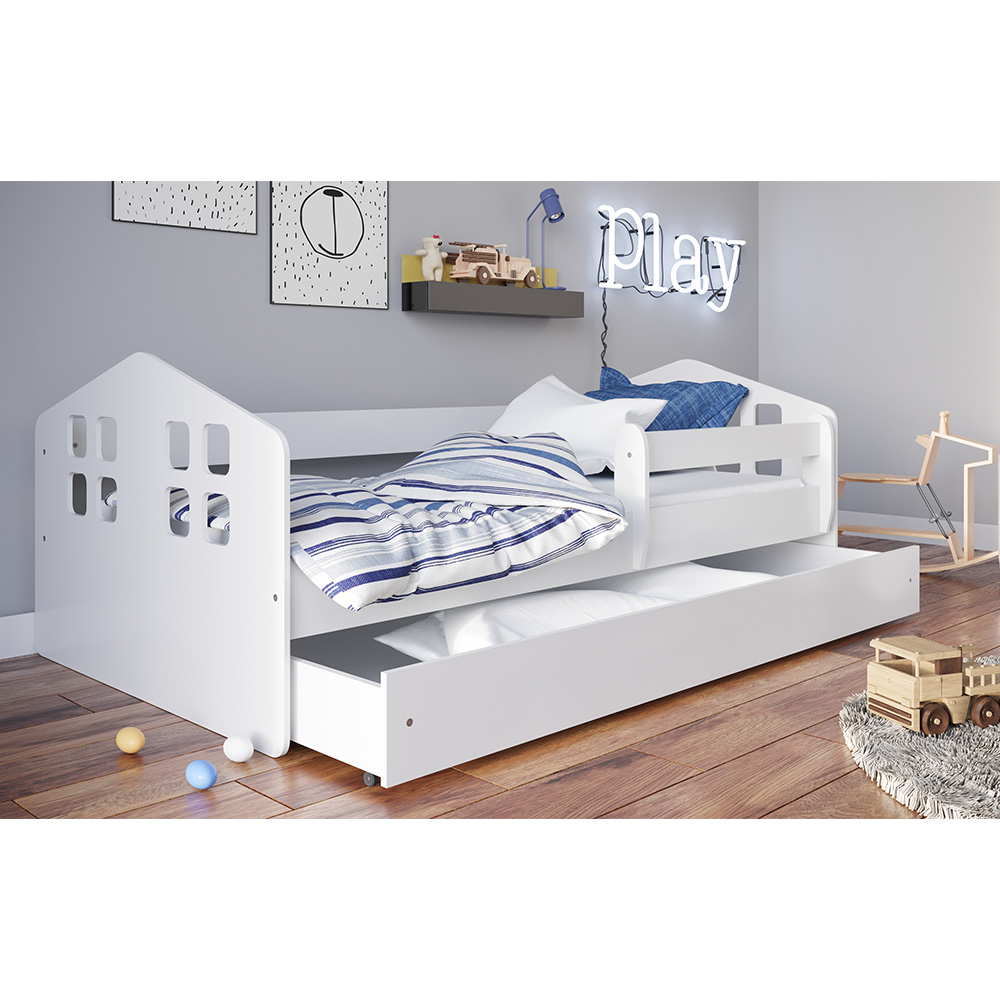 Jednolůžko Kacper zútulní pokojíček těch nejmenších. Postel Kacper nabízíme v neutrální bílé barvě a několika velikostech. Nábytek je vyroben v kombinaci MDF a kvalitní laminátové dřevotřísky o síle 18 mm. Produkty jsou lakované kvalitním krycím lakem, bezpečným pro děti. Zboží Vám dodáme v demontu s podrobným návodem na sestavení a kováním.
