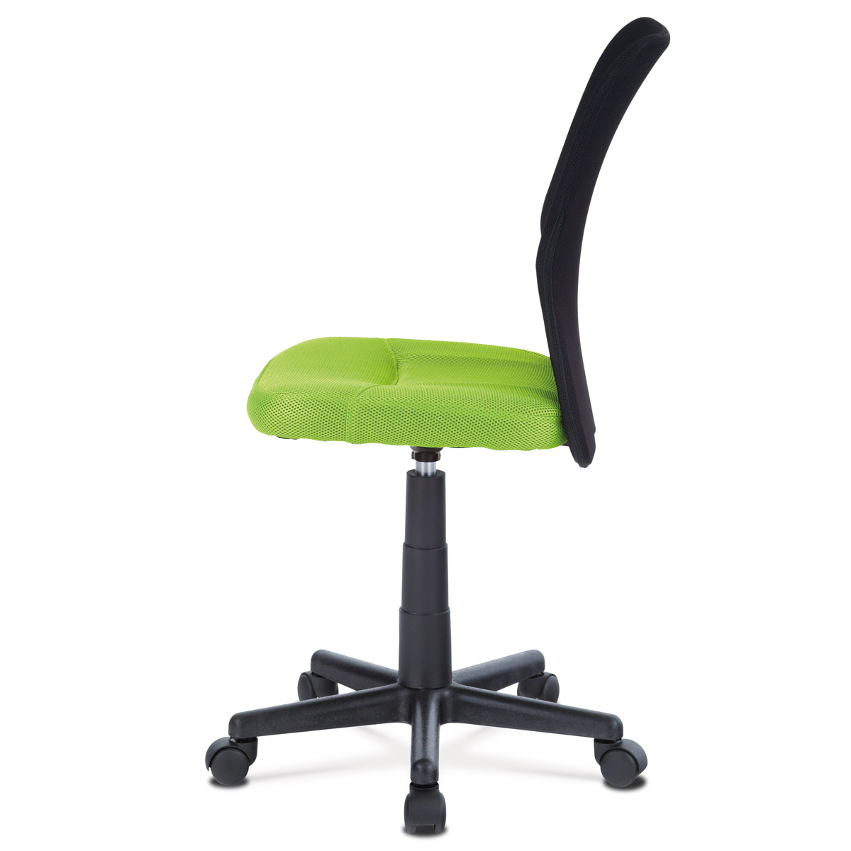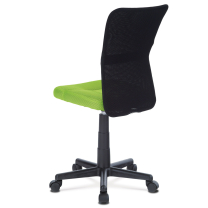 Dětská kancelářská židle čalouněná látkou MESH ve stylové kombinaci zelené a černé barvy. Díky plynovému pístu je židle výškově nastavitelná. Židle má také plastový kříž s plastovými kolečky vhodnými na koberce. Nosnost 60 kg.