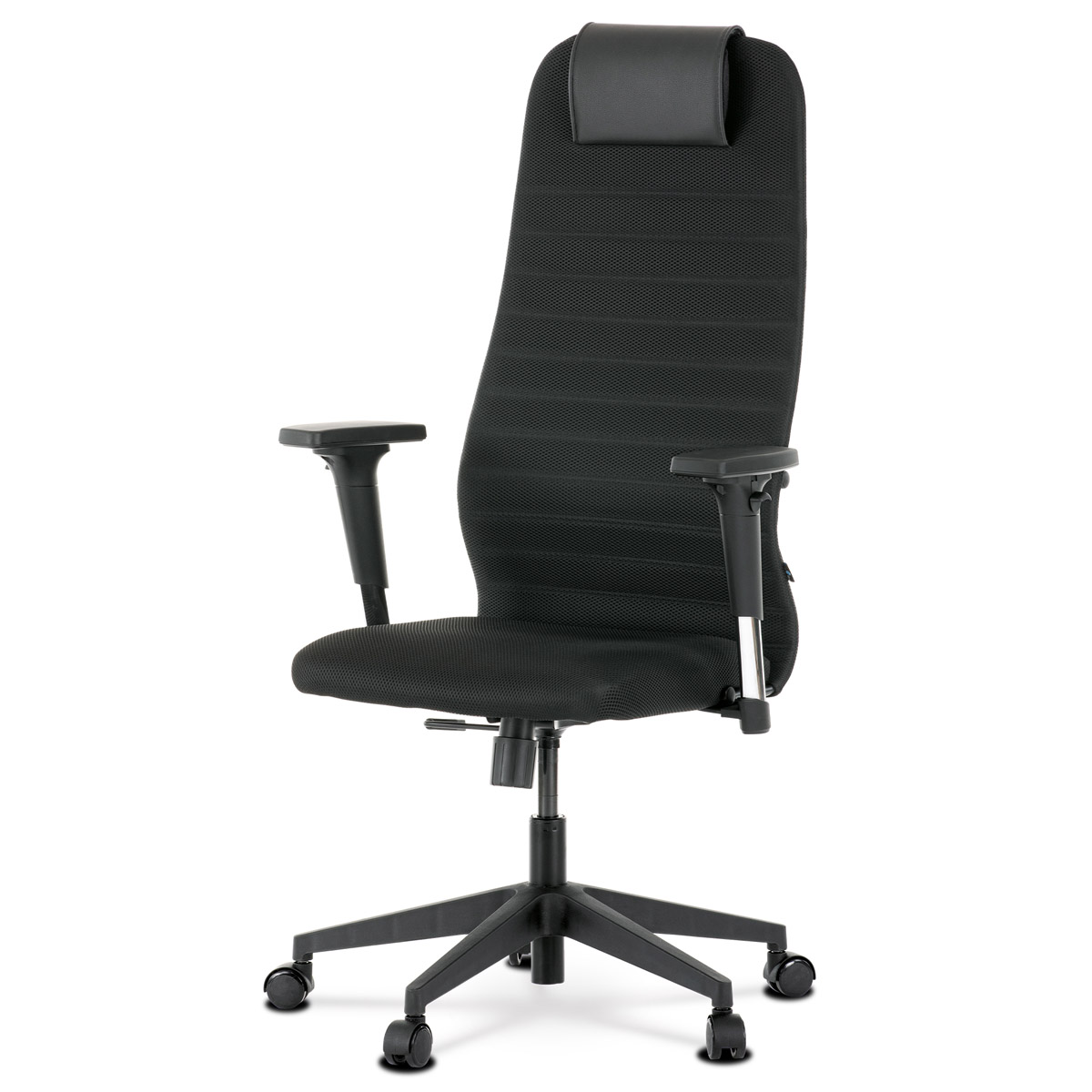 Kancelářské kreslo s označením KA-U09 BK nabízí ergonomicky tvarované opěradlo potažené černou látkou, doplněné o černé ekokůží čalouněný polštářek v oblasti hlavy pro zvýšený komfort. Sedák je rovněž čalouněný látkou, která zajišťuje příjemný pocit při dlouhodobém sezení. Kreslo je vybaveno houpacím mechanismem umožňujícím plynulé naklápění s možností aretace v základní poloze, což podporuje dynamické sezení a odlehčuje páteři. Područky typu 2D jsou nastavitelné ve dvou směrech (výška a šířka), což umožňuje individuální přizpůsobení pro lepší ergonomii. Stabilní plastový kříž s pěti kolečky zajišťuje snadnou mobilitu a pevnost celé židle. Černá barva a jednoduchý design vhodně doplní moderní kancelářské prostředí.