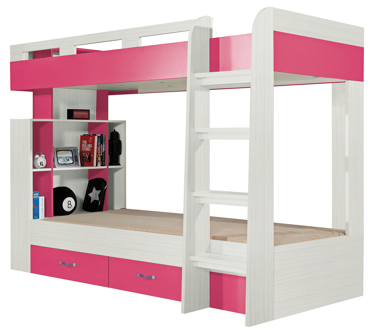 Patrová postel Komi KM19 - Dětský sektor Komi vyniká především svou variabilitou. Tento sektorový nábytek je vhodný nejen do dětských pokojíčků, ale je velice vhodný i do studentských pokojů. V nabídce tedy naleznete všechny díly nábytku, které jsou třeba pro správně vybavený pokoj. Další předností dětského pokoje Komi je jeho velice atraktivni barevnost. Základ tvoří lamino v barevném odstínu jasan komi, které je v kombinaci buďto s odstínem růžové, nebo modré. Hrany nábytku jsou opatřeny ABS hranou. Zboží je dodáváno v demontu.