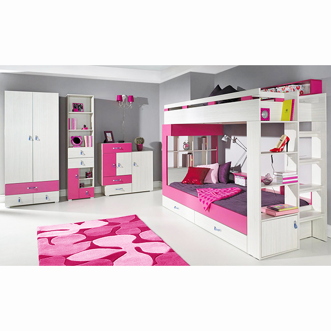 Palanda KM14 - Dětský sektor Komi vyniká především svou variabilitou. Tento sektorový nábytek je vhodný nejen do dětských pokojíčků, ale je velice vhodný i do studentských pokojů. V nabídce tedy naleznete všechny díly nábytku, které jsou třeba pro správně vybavený pokoj. Další předností dětského pokoje Komi je jeho velice atraktivni barevnost. Základ tvoří lamino v barevném odstínu jasan komi, které je v kombinaci buďto s odstínem růžové, nebo modré. Hrany nábytku jsou opatřeny ABS hranou. Zboží je dodáváno v demontu.