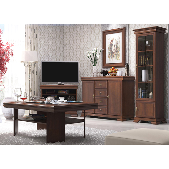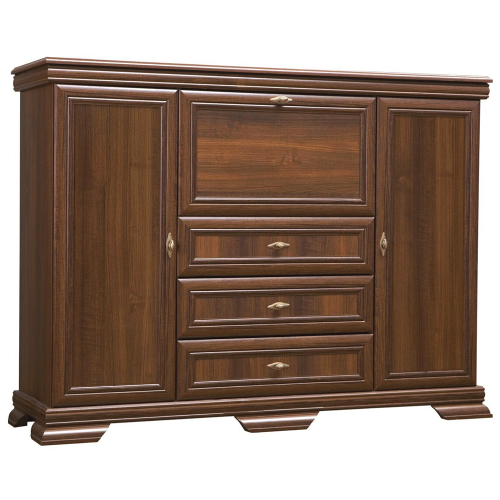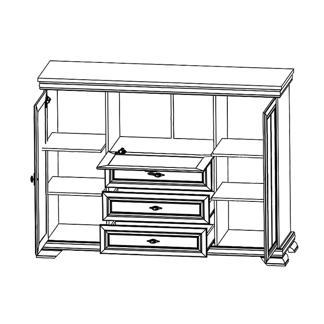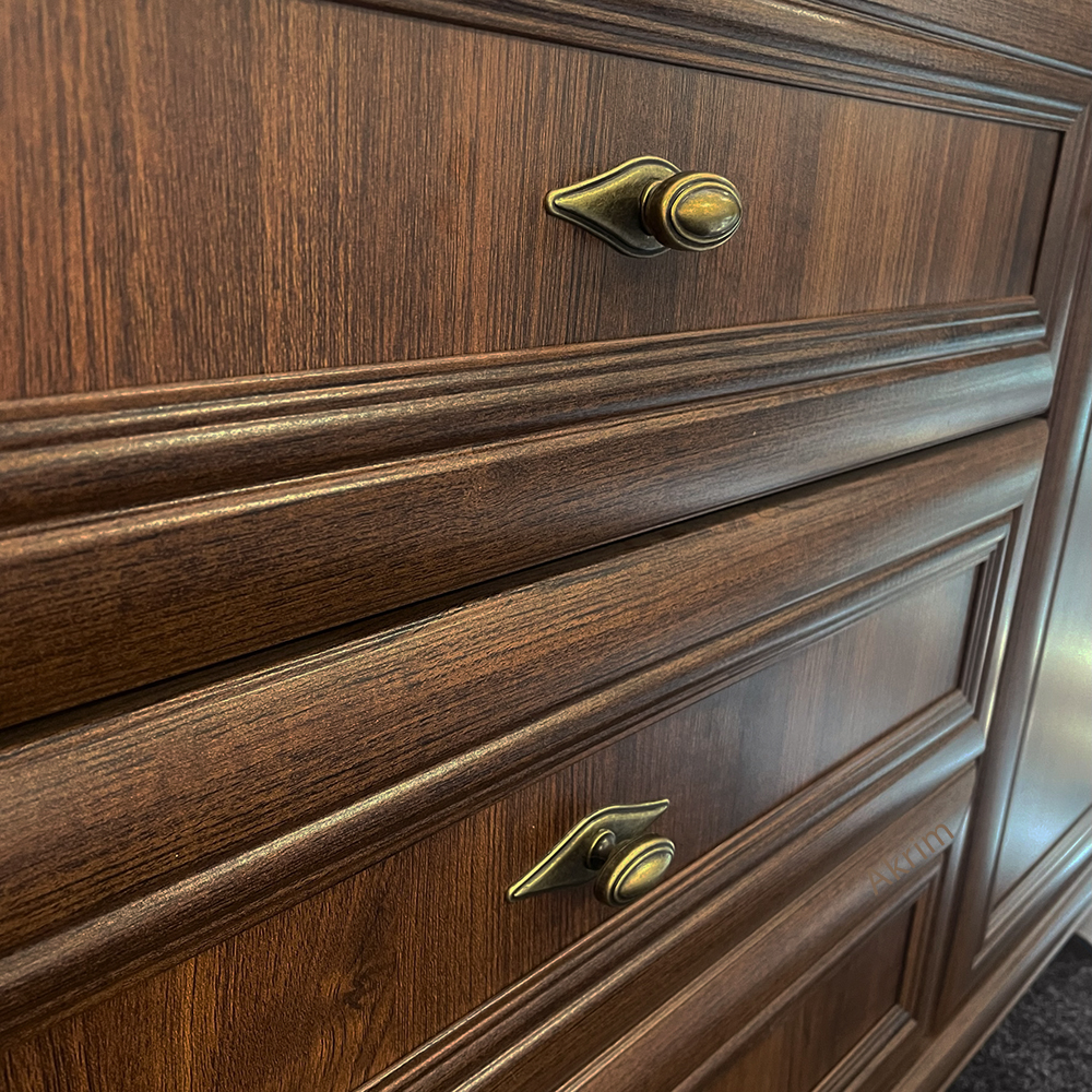 Nábytek je vyroben z kvalitní laminátové dřevotřísky s ozdobnými MDF lištami v příjemném teplém dekoru samoa king. Záda a dna zásuvek tvoří HDF desky. Zdobné kovové úchyty skvěle podtrhují celkový design nábytku.