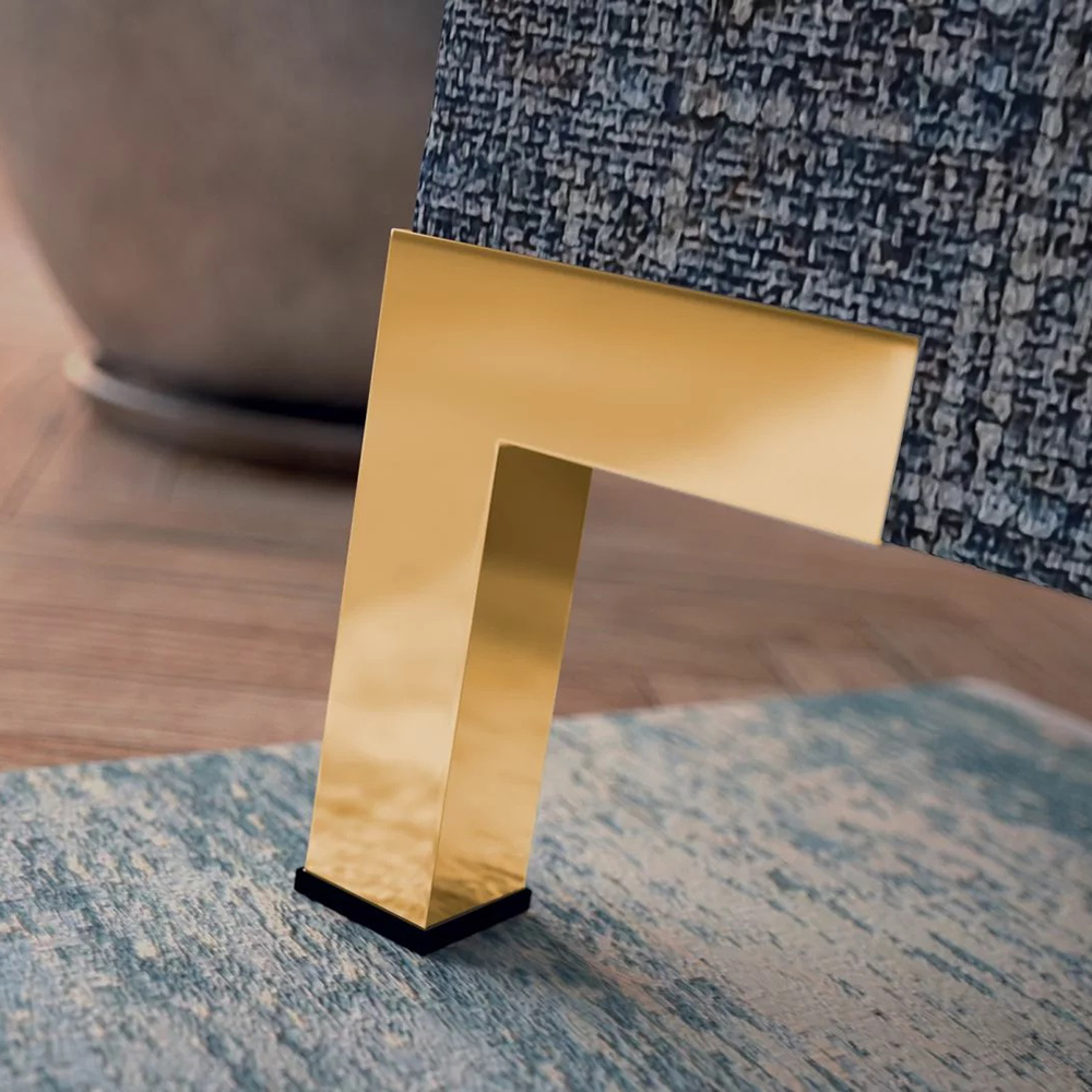 Křeslo skvěle doplňují vysoké kovové nožičky o výšce 10 cm, které dodávají lehkost a styl. Můžete si je vybrat v několika odstínech – stříbrná, zlatá nebo černá – a přizpůsobit tak křeslo Vašemu interiéru.