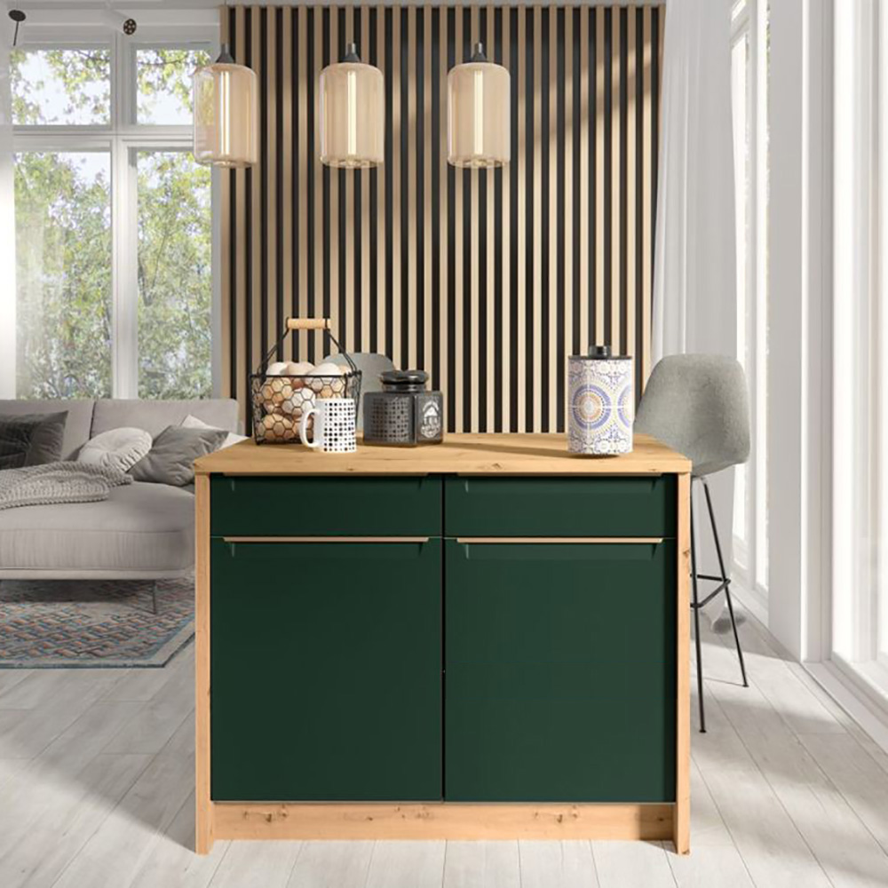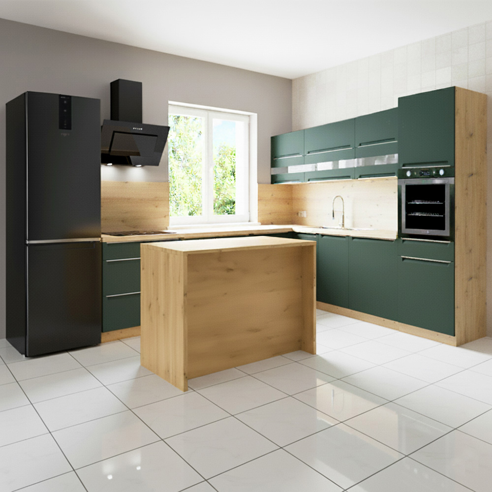 Kuchyňská linka GLAMOUR z 270x260 cm | SE SOKLEM a s ostrůvkem 126x70 cm | zelená mat/artisan