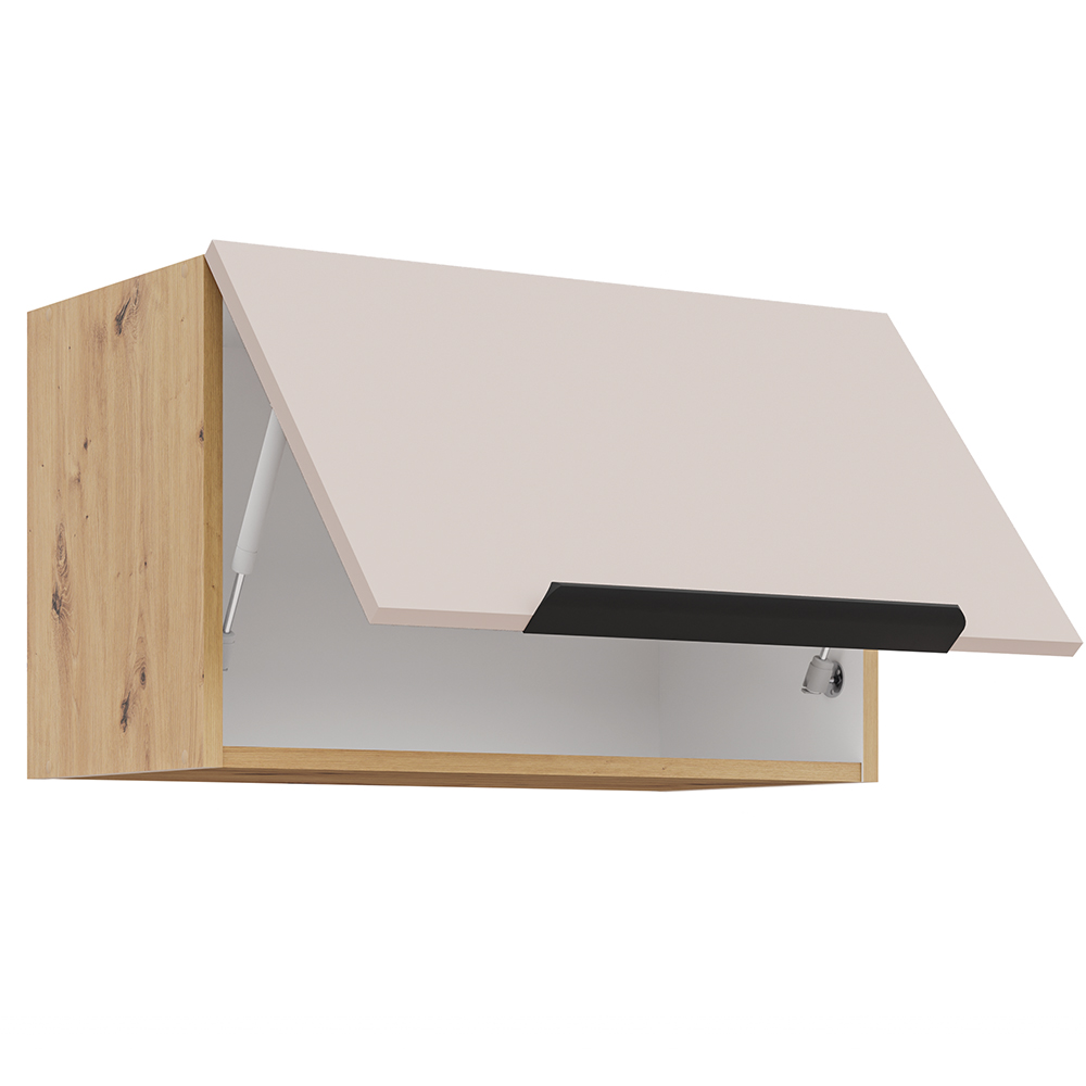 - Dvířka v teplém odstínu kašmíru se skvěle doplňují s korpusem v jemném dekoru dub artisan. Vnitřní bílé provedení skříněk navíc usnadňuje kontrolu čistoty a pořádek v každém detailu.