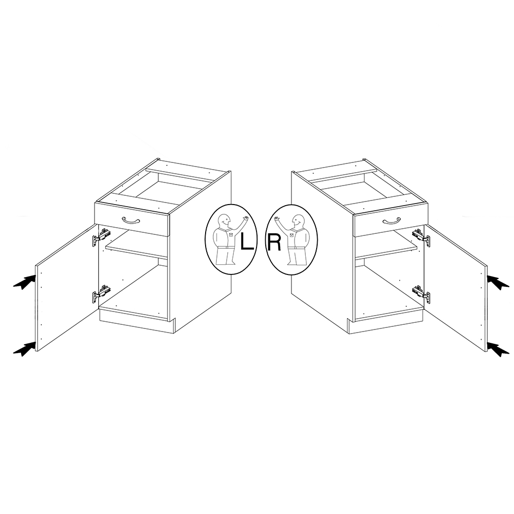 - 2x dolní skříňka 50D 1F 1S se zásuvkou (dvířka univerzální)